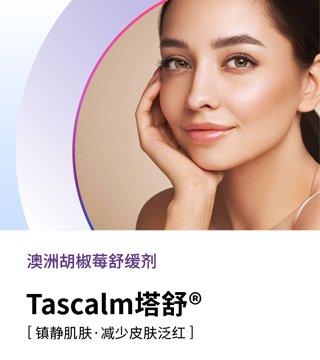 Tascalm 塔舒®来源于澳洲塔斯马尼亚胡椒莓叶的活性成分,具有舒缓肌肤,减少肌肤泛红活性。